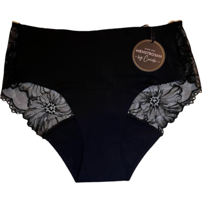 Menstrosan Elegance är en mjuk och stretchig menstrosa som är sömlös framtill och har en fin spets baktill. Absorptionsnivå: Medium.