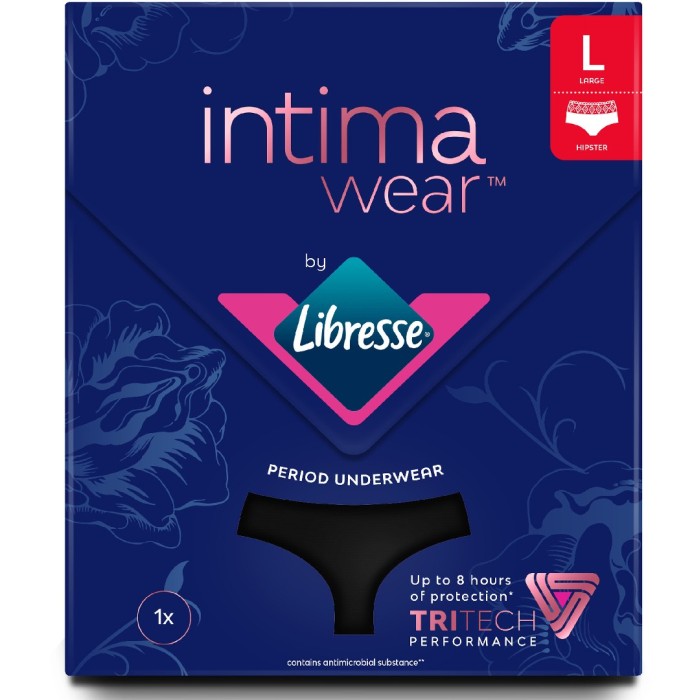 Intimawear är en fin hipstertrosa med spets i midjan. Trosorna ger dig samma absorptionsförmåga som dina vanliga Libresse Ultra-bindor (eller motsvarande två tamponger av storlek Normal) och kapslar in mens och annan vätska i upp till 8 timmar. Intimawear har en kroppsnära, mjuk passform för att vara lika bekväma som dina vanliga underkläder.