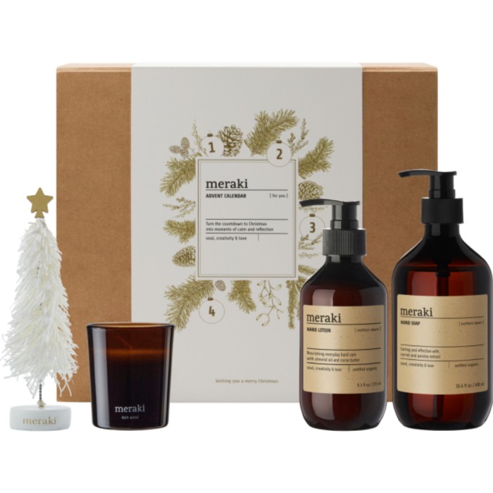 Meraki Adventsask 2025 är en fin presentask för att fira de fyra söndagarna i adventstider. Den fina presentförpackningen har festliga mönster och en stilren och gedigen design.