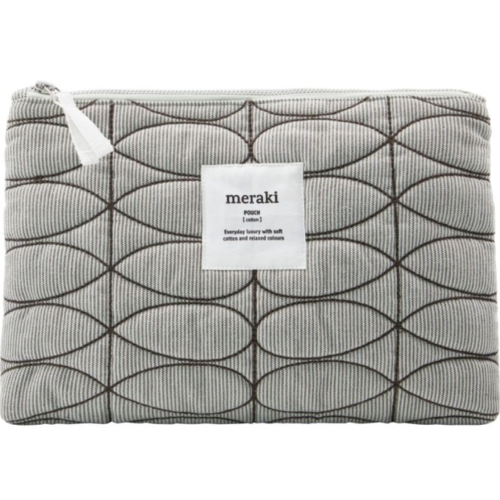 I sminkväskan Mentha från Meraki kan du fövara ditt smink och annat du behöver i vardagen. Fin att använda både hemma för att förvara dina produkter, eller att ta med på resan när du vill packa det nödvändigaste. Sminkväskan är tillverkad av quiltad bomull med dekorativa sömmar i gröna nyanse. Fin att ha stående framma på en hylla i badrummet. Väskan har ett huvudfack och två små fickor för att hålla koll på dina sminkborstar, nagellack och andra produkter. Använd denna sminkväska separat, eller i kombination med den mindre sminkpåsen från Meraki. Mått: 30 x 3,5 x 20 cm.