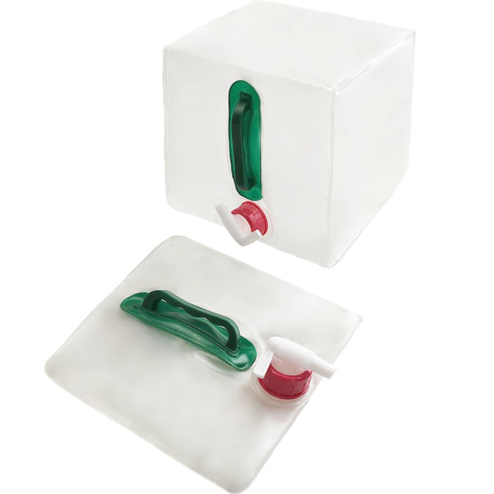 Hopfällbar vattendunk med handtag som rymmer 10 liter och tar minimalt med plats. Den vikbara dunken är försedd med en tappkran i vinkel, som gör att den kan placeras utanför kanten på t ex en bänk eller ett bord för enkel tappning.
