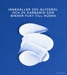 Karbamid (urea), Glycerol, Butylenglykol, Hydrogenerad rapsolja, Dexpantenol, Medellångkedjiga triglycerider, Cetostearylalkohol, Dimetikon (E900), Fast paraffin (E905), Glycerolmonostearat (E471), Makrogolstearat (E431), Triacetin (E1518), Karbomer, Renat vatten