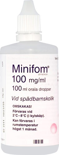 Minifom orala droppar lindrar kolikbesvären genom att bryta ner skum och bubblor som orsakas av nedsvald luft. Minifom verkar direkt på gasansamlingarna i mag-tarmkanalen och tas inte upp av kroppen. Full effekt av Minifom fås först efter ett par dygns behandling.