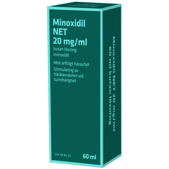Minoxidil NET är ett receptfritt läkemedel vid ärftligt håravfall. Lösningen innehåller minoxidil som stimulerar håråterväxten vid tunnhårighet. Minoxidil NET kan användas för behandling av tidiga och mindre uttalade former av ärftligt håravfall hos män och kvinnor över 18 år. För män kan Minoxidil NET även användas för att minska ytterligare håravfall.
