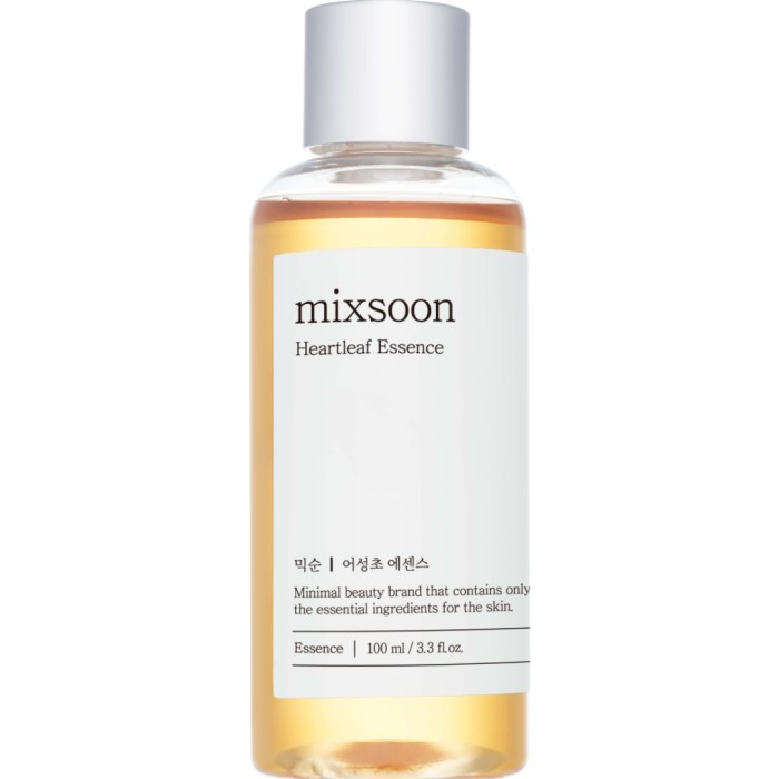 Mixsoon Heartleaf Essence är ett serum med Houttunynia Cordata (heartleaf) Extract som balanserar huden. Denna vårdande ingrediensen är känd för sina lugnande egenskaper, och bidrar även till att kontrollera överflödig talg. Har en lätt formulering som absorberas snabbt och ger näring utan att huden känns kladdig.