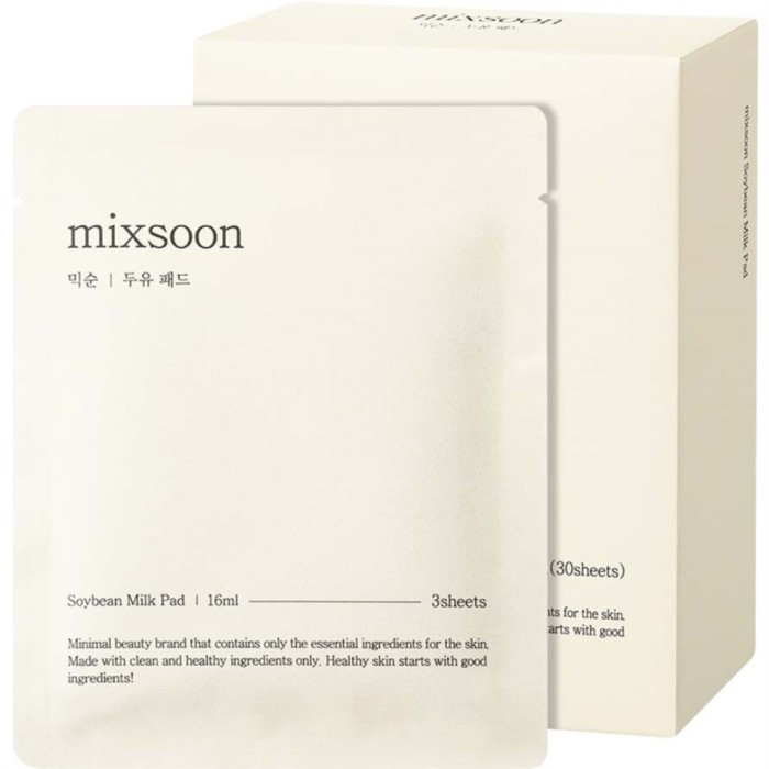 Soybean Milk Pads från K-Beautymärket Mixsoon är praktiska dynor som är hygieniska att ta med sig. Förpackningen innehåller 10 påsar med 3 st ark i varje. Soybean Milk Pads är dynor med en sval, återfuktande och näringsrik essens. Kan användas i ansiktet eller på halsen. Låt verka i 10 minuter.