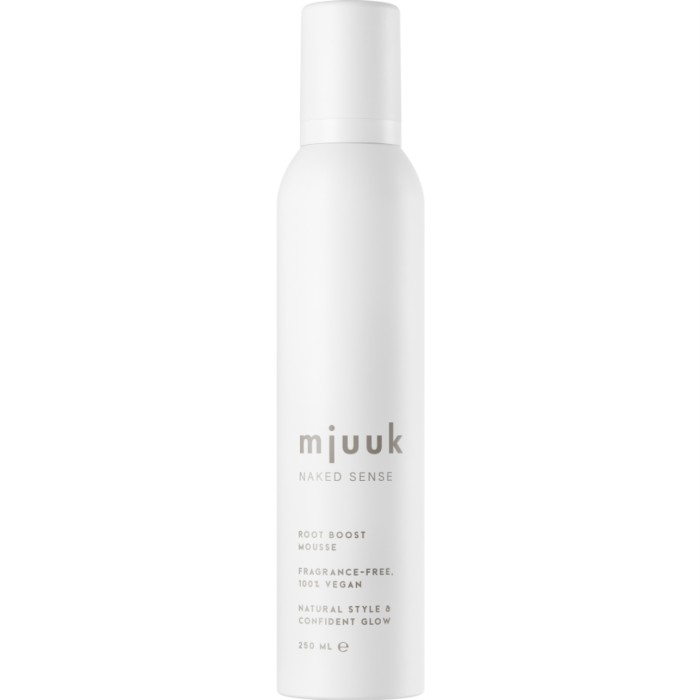 Mjuuk Naked Sense Fragrance-Free Root Boost Mousse är en oparfymerad hårmousse som ger håret volym och textur utan att det känns tungt. Moussen är vegansk och doftfri.