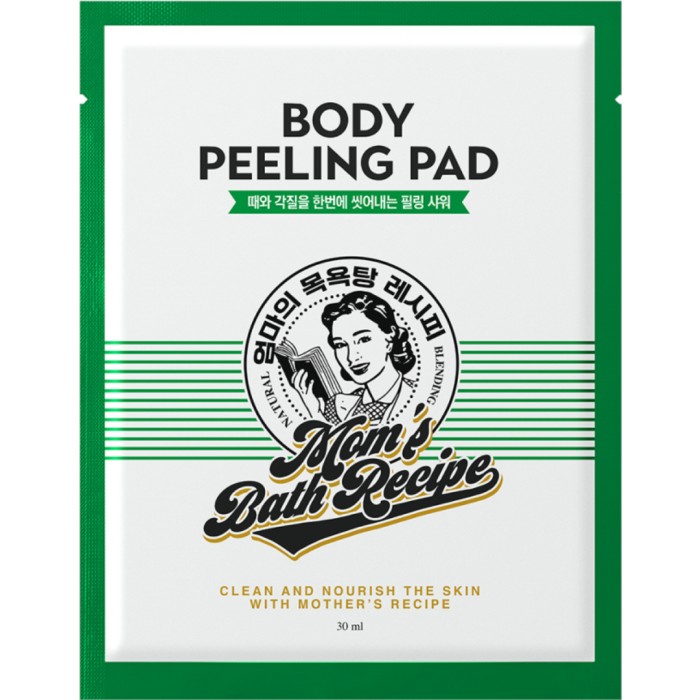 Mom's Bath Recipe Body Peeling Pad är en exfolierande och återfuktande peeling-pad för en mjuk och len hud på kroppen. Paden har en återfuktande effekt tack vare ingredienser som honung och yoghurt. Har en doft av japansk ädelcypress som kanske bidrar till en avslappnande effekt. Hygienisk peeling-pad för engångsbruk som kan användas hemma i duschen, men som också är lätt att ta med till gymmet eller på resan.
