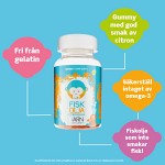 Monkids Fiskolja är ett kosttillskott för barn i form av mjuka geléfiskar med citronsmak. Monkids tuggisar har fått sin färg från frukt och grönsaker. Monkids Fiskolja är för barn som inte gillar smaken av fisk eller fiskolja. Smaken av fisk kommer inte fram oavsett hur mycket du tuggar. Monkids Fiskolja innehåller inte gelatin eller artificiella sötningsmedel.
