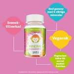 Monkids Mineral Ananas är en lättuggad gummy med en naturlig ananassmak och innehåller sex mineraler, bland annat magnesium, selen, zink och jod. Magnesium bidrar till normal muskelfunktion och nervsystemets normala funktion. Selen bidrar till immunsystemets normala funktion och bidrar till att skydda cellerna mot oxidativ stress.