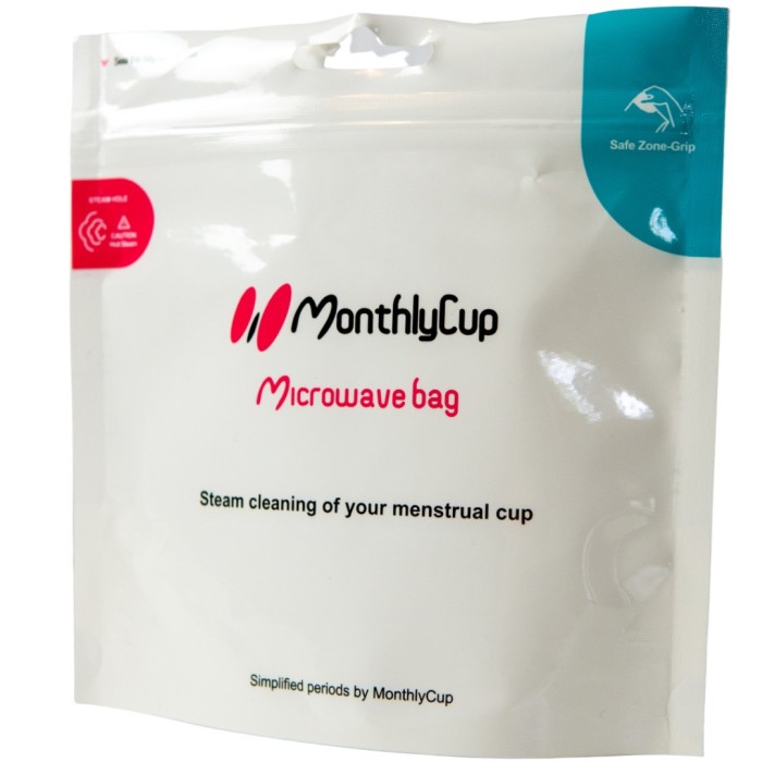 MonthlyCup Microwave Bag används för att göra rent menskoppen i mikrovågsugnen, som ett alternativ till att koka dem i kastrull. Med lite tillsatt vatten ångrengörs menskoppen i mikrovågsugnen och är redo att användas under nästa mensperiod.