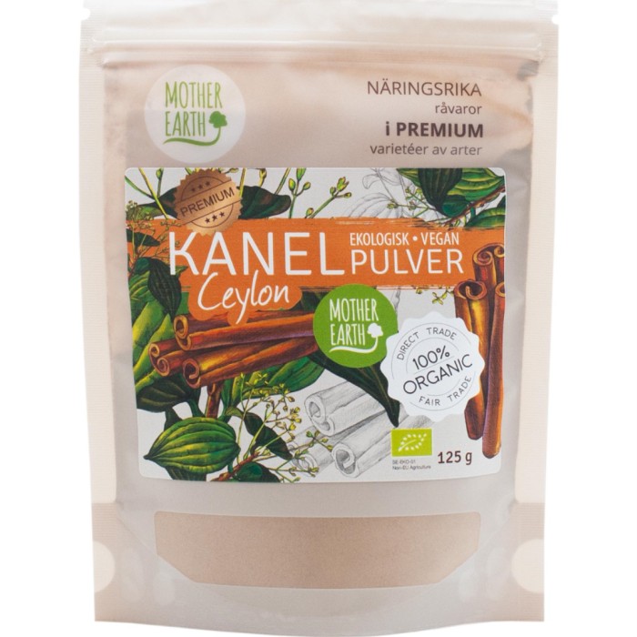 Malen ceylonkanel från Mother Earth. En välkänd krydda med många användningsområden, passar i bakverk, drycker eller till frukosten. Ger även maträtter, till exempel curryrätter, en söt och aromatisk touch.