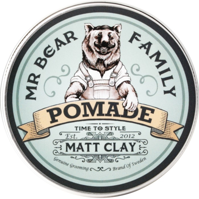 Pomade Matt Clay från Mr Bear Family är en vattenbaserad ler-pomada för håret, som ger en matt textur och naturlig look. Pomade Matt Clay innehåller bentonit som gör håret fylligare, ger volym och kontrollerar frissighet. Hårpomadan innehåller naturligt vårdande ingredienser som stärker håret och lugnar hårbotten.