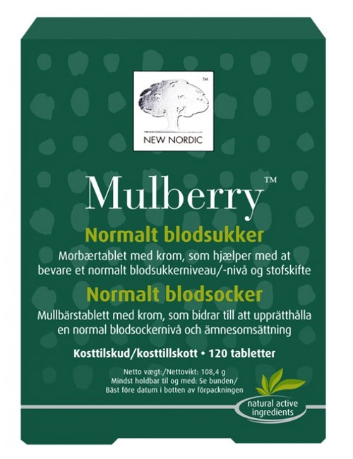 New Nordic Mulberry är ett kosttillskott som innehåller krom. Krom bidrar till att bibehålla normala blodsockernivåer.
