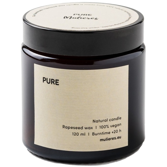 Mulieres ljus är gjorda av endast naturliga ingredienser. Detta ljus, som heter Candle Pure, är doftfritt och passar även dig som är allergisk med dofter. Mulieres Ljus är handgjorda av vax från raps istället för paraffin. Rapsen är odlad i Europa. Certifierat av Vegan Society.