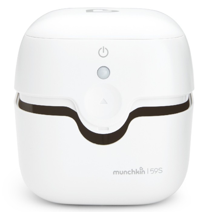 Munchkin Steriliseringsbox är en minibox som rengör dinappar, sugnappar och andra små ting, och som steriliserar dem med UV-ljus.