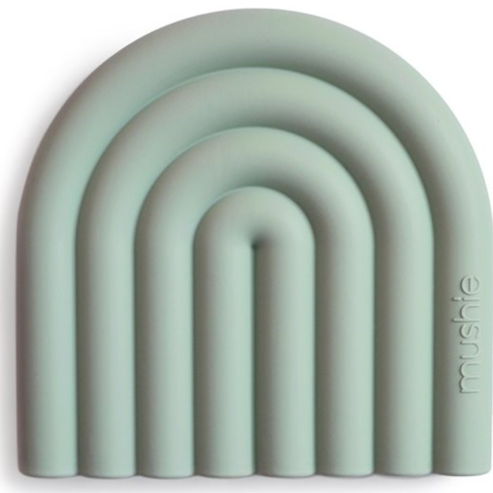 Mushie Bitleksak Regnbåge är en stilren bitleksak i silikon designad för att lindra barnets ömma tandkött vid tandsprickning. Bitringen är tillverkad av silikon och är är lätt för små händer att greppa. Den har en texturerad yta för extra komfort. Stimulerat barnets sinnen och främjar utvecklingen av finmotorik. Passar barn från 3 månader och uppåt.