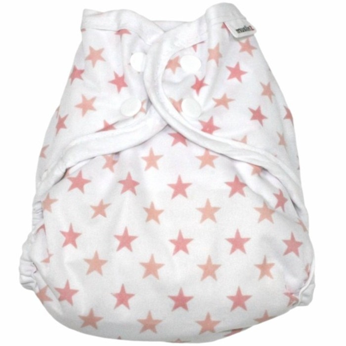 MuslinZ tygblöja finns i olika färger/mönster (detta mönster heter Pink Stars) och är designade med en dubbelsydd kant och en justerbar midja för att ha en bra passform och vara säkra mot läckage. MuslinZ tygblöja har elastiska benslut för en skön passform kring barnets lår. Tygblöjan ska användas med ett inlägg, som viks omlott och placeras i tygblöjan som har fickor vid mage och rygg som håller inlägget på plats. (Inlägg ingår ej, utan köps separat.)