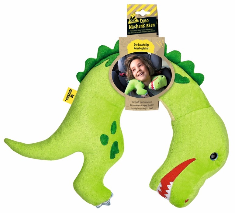 Dino är en mjuk och skön nackkudde för dinosaurietokiga barn. En nackkudde kan vara toppen att ha med på resan i bilen, på tåget eller när man flyger.