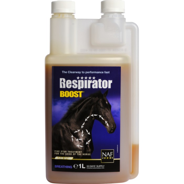 Respirator Boost rekommenderas till alla hästar som visar tecken på nedsatt lungfunktion orsakad av mögelsporer, luftburna allergener, pollen och damm. Innehåller även eteriska oljor av eukalyptus och kryddnejlika som kan underlätta den naturlig rensning av luftvägarna.
