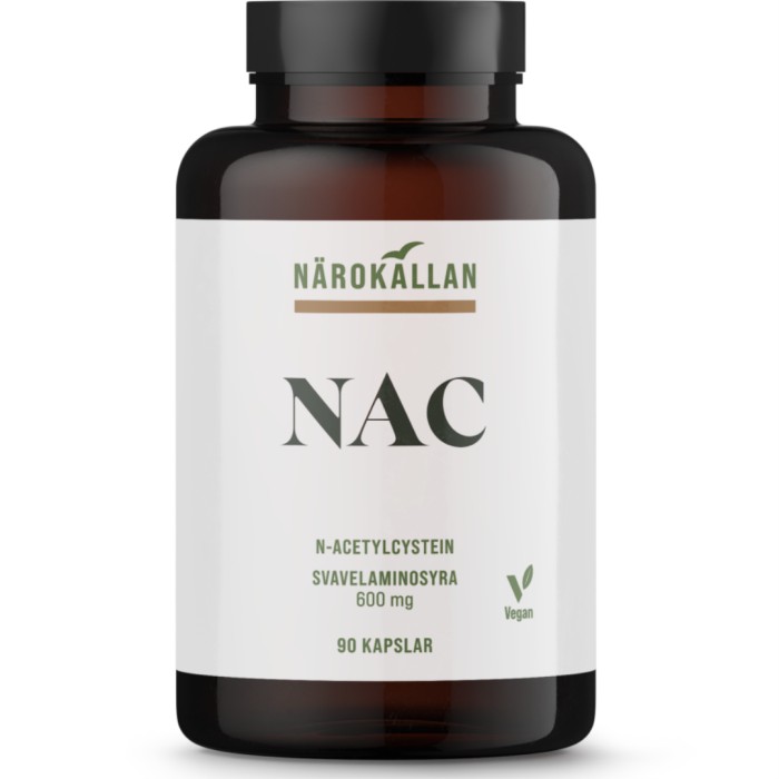 Närokällan NAC N-Acetylcystein är ett kosttillskott som består av aminosyran cystein som är en svavelrik aminosyra.