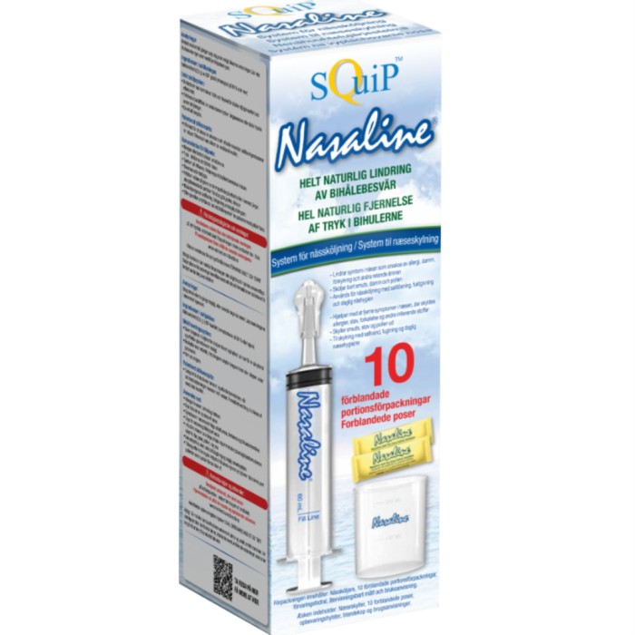 Nasaline Nässköljare används för en skonsam och enkel sköljning av hela näshålan. Med Nasaline sköljer du näsan med saltvatten vid t.ex. förkylningar, bihåleinflammationer, allergier och irriterad näsa pga vistelse i torr, dammig eller rökig miljö. Irritationen i näsan dämpas och slemhinnorna återfuktas.