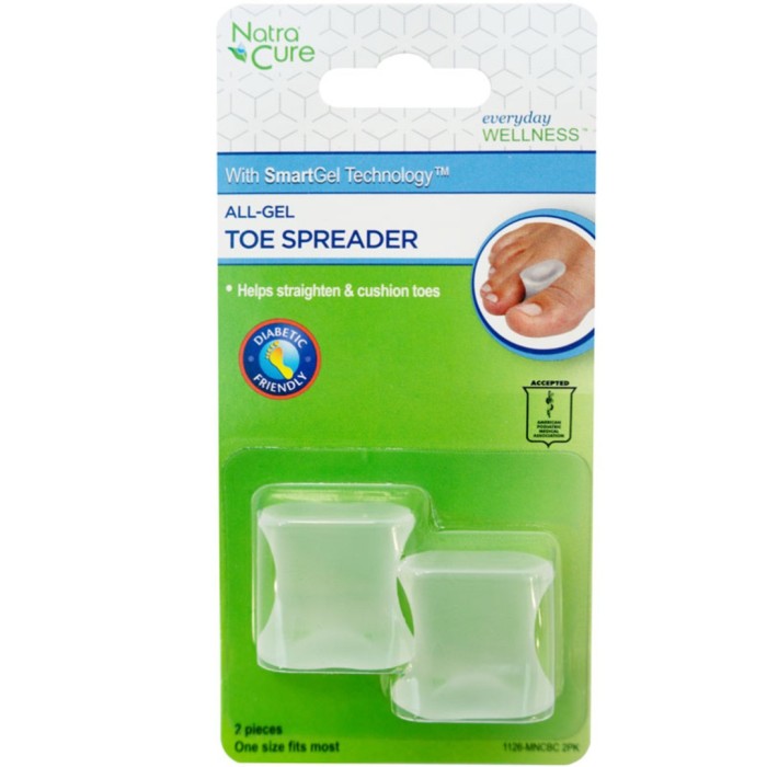 NatraCures tåspridare har en mjuk och anatomisk form och skyddar huden mellan tårna för att hjälpa till att motverka skavsår och blåsor. Kan handtvättas och återanvändas.