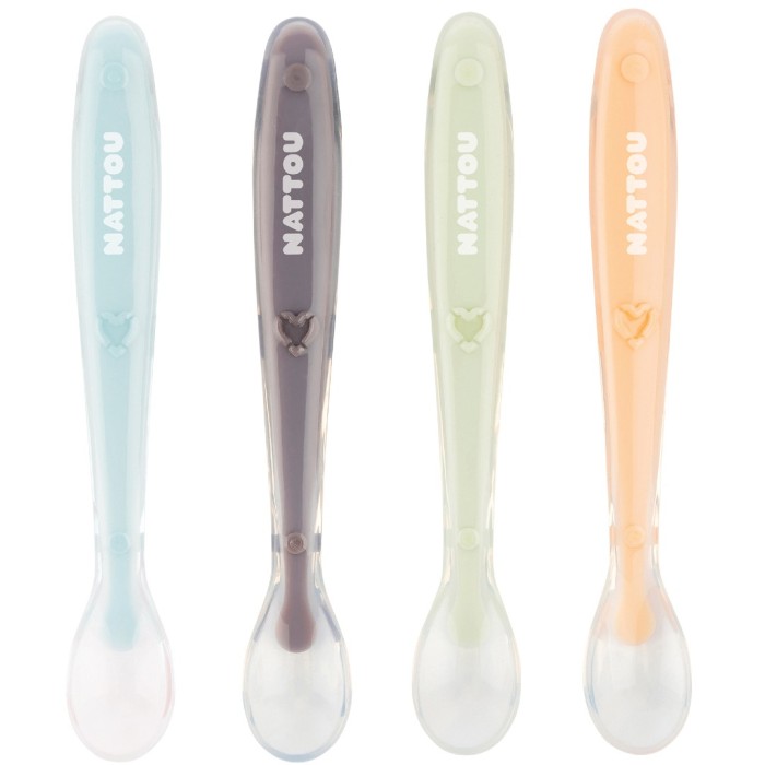 Nattou Soft Silicone set med fyra skedar i mjuk silikon. Skedarna är greppvänliga för både stora och små händer. Skedarna har en extra mjuk och flexibel silikonspets som är utformad för att vara skonsam mot barnets tandkött. Ett praktiskt plastfodral medföljer så att du kan ta med skeden på utflykten. Skedens längd: 16 cm.