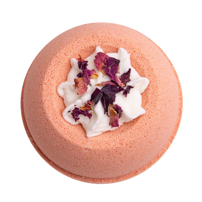 Badbomb med naturliga ingredienser som färgar badvattnet och ger det doft. Innehåller sheasmör.