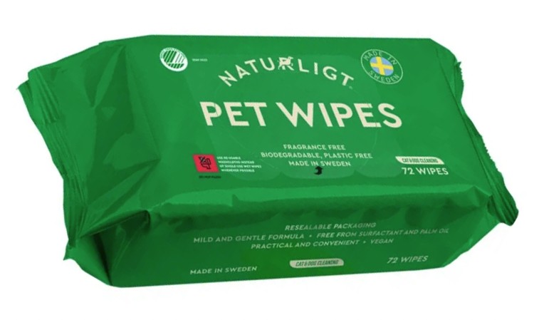 Naturligt Pet Wipes är skonsamma våtservetter till sällskapsdjur. 72 st.