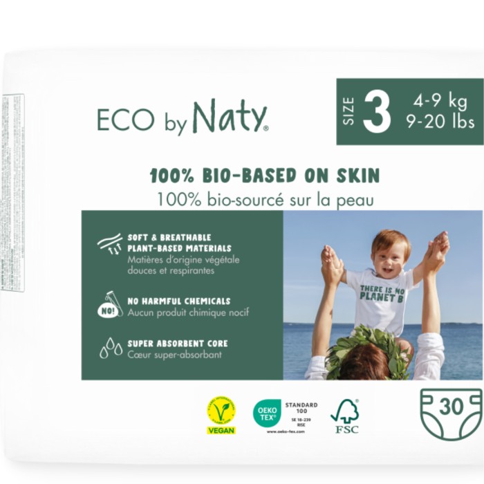 Natys blöjor är certifierad 100% biobaserad i de material som rör huden (toppskikt, yttre lager, benfickor och öron), och är tillverkad utan fossila plaster. Blöjorna är supermjuka och den växtbaserade ytan ger en mjuk känsla samtidigt som den är andningsbar och skonsam för känslig hud. Dermatologiskt testad av Dermatest.