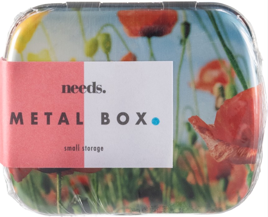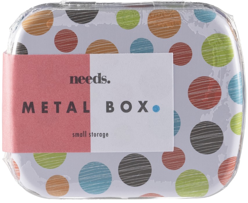 Praktisk metallburk med ett fack för förvaring av tabletter eller andra småsaker.