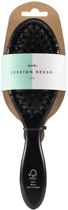 Needs Cushion Brush är en kuddborste, en klassisk träborste med handtag i 100% FSC-certifierat trä. Borsten har en mix av nylonpinnar och naturhår för att vara skonsam för håret. Höjd: 21,5 cm. Bredd 6,2 cm.