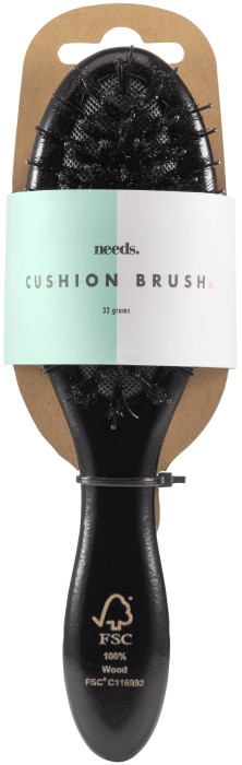 Needs Cushion Brush är en liten kuddborste i trä. Handtag av 100% FSC-certifierat trä och en mix av nylonpinnar och naturhår som är skonsamma för håret för att minska slitage.