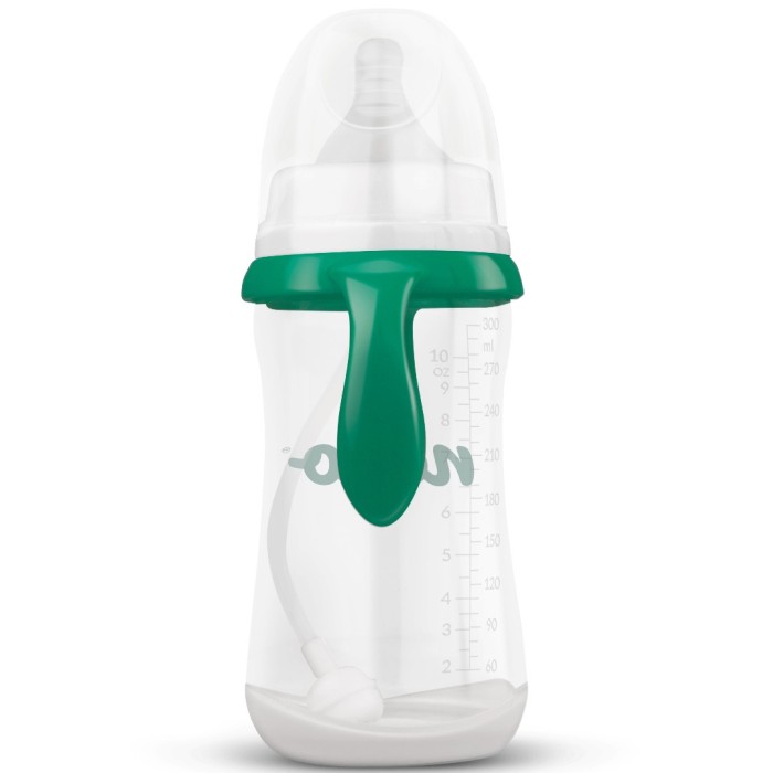 Nappflaskan har en greppvänlig design och har av/påtagbara handtag. Vätskan till dinappen leds genom ett mjukt sugrör med en tyngd längst ner. Tyngden säkerställer att sugrörets ände följer vätskan och att det går att dricka oavsett åt vilket håll flaskan hålls.
