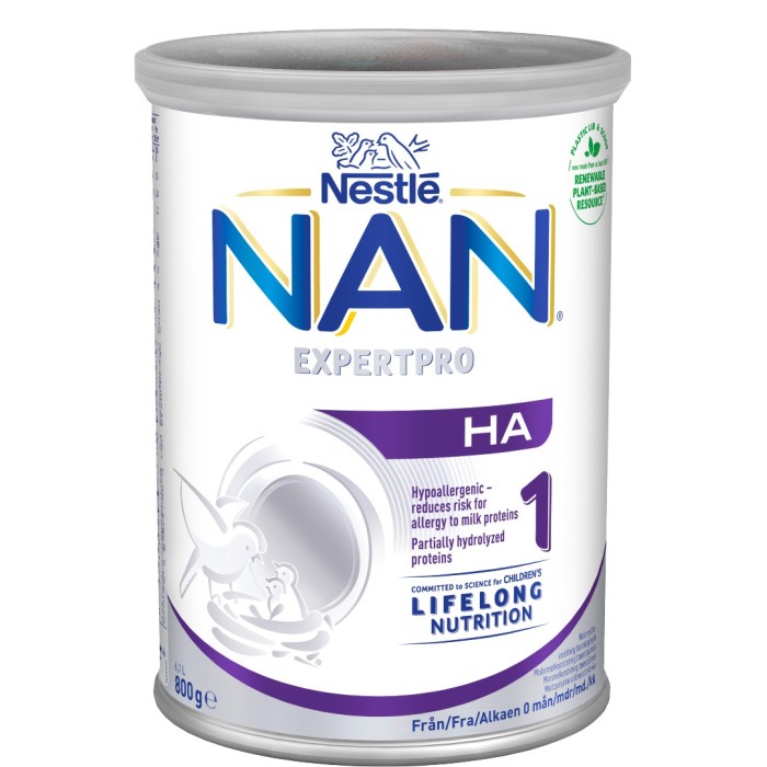 NAN Expertpro H. A. 1 är speciellt avsedd för friska barn med risk for att utveckla allergi mot mjölkprotein (t.ex. när någon familjemedlem är allergisk). OBS! NAN ExpertproH.A.1 får inte ges till barn som redan har en utvecklad komjölksproteinallergi.