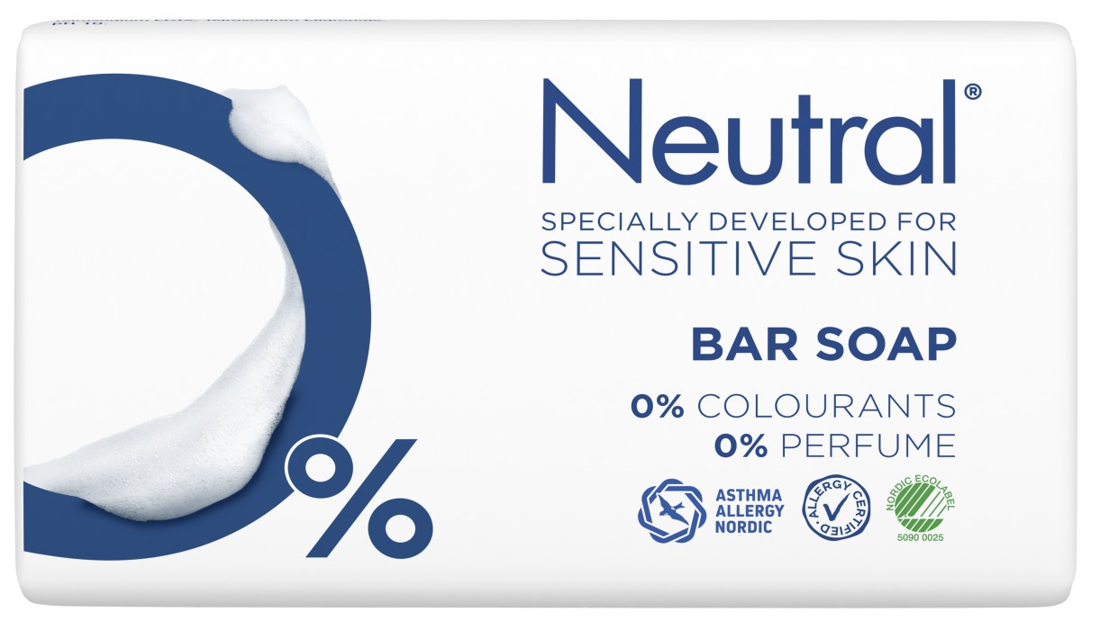 Neutral Bar Soap är en fast tvål utan parfym som passar känslig hud. Förpackningen innehåller 2 st tvålar.