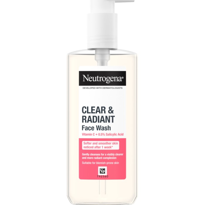 Neutrogena® Clear & Radiant Face Wash är en uppfriskande ansiktstvätt med vitamin C och salicylsyra som rengör huden. En rengöring framtagen för att göra huden ren och fräsch och ge den lyster. Clear & Radiant Face Wash har en gelformulering som rengör huden skonsamt och tar bort orenheter och överflödig olja.
