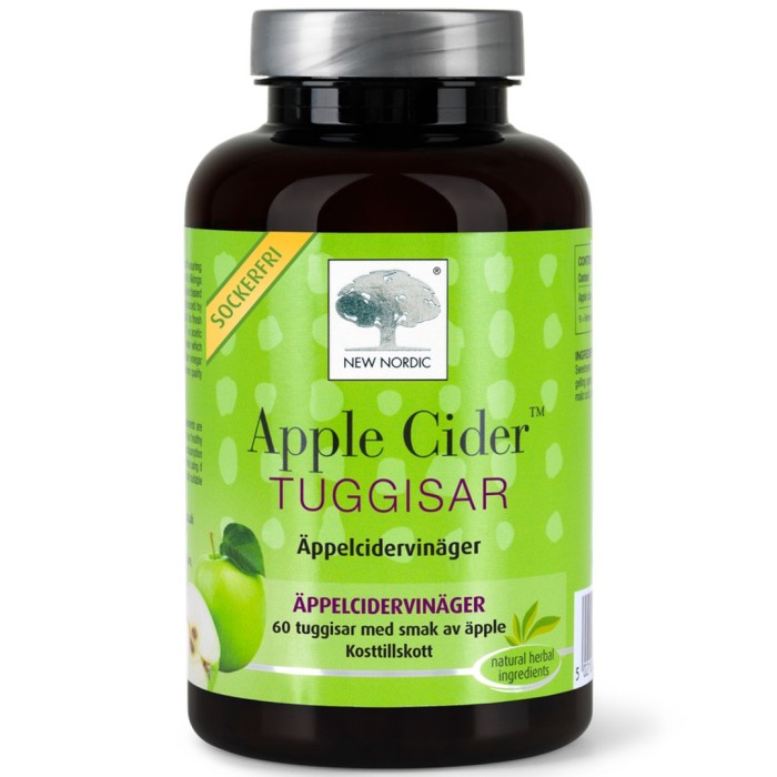 New Nordic Apple Cider Tuggisar är ett kosttillskott i form av veganska tuggtabletter med äppelcidervinäger.