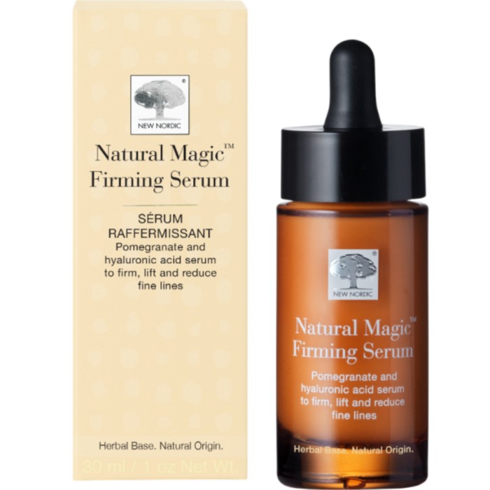 Natural Magic™ Firming Serum från New Nordic är ett ansiktsserum som innehåller bland annat granatäpple och hyaluronsyra. Serumet reducerar fina linjer, ger huden ett lyft och stramar upp huden.