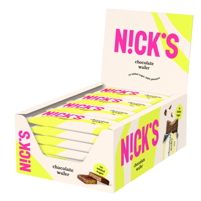 Nicks Chocolate Wafer är en krispig kexbar doppad i mjölkchoklad. Utan tillsatt socker, palmolja och gluten. Sötad med sötningsmedel.