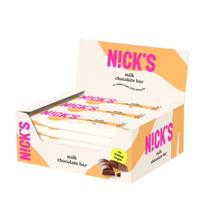 Nicks Milk Chocolate är en len mjölkchoklad med minst 35% kakao. Chokladen innehåller inte något socker, utan är sötad med sötningsmedel.