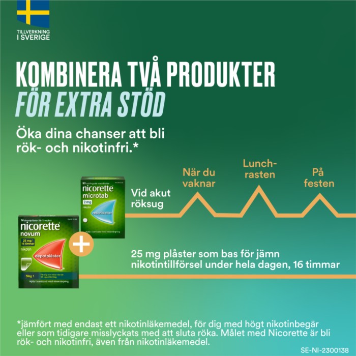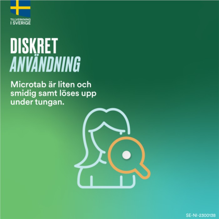 Nicorette Microtab är en resoriblett för dig som vill sluta röka eller röka mindre. Resoribletten, som du lägger under tungan, smälter snabbt och ger snabb effekt. Vid högt beroende kan du ta 2 tabletter samtidigt. Följ den rekommenderade behandlingstiden och trappa ner.