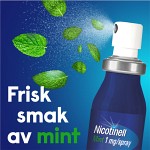Nicotinell Mint (nikotin) 1 mg/spray munhålespray, lösning är ett receptfritt läkemedel som används för rökavvänjning. Från 18 år. Gravida rökare rekommenderas att sluta röka helt utan nikotinersättning. Läs bipacksedeln noggrant. Haleon Denmark ApS, 020-10 05 79.