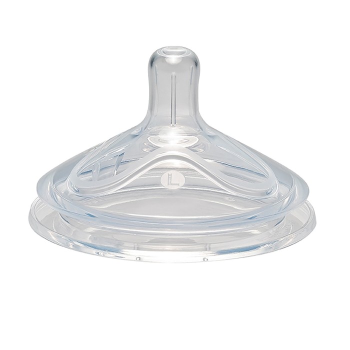Nip First Moments Dinapp Wideneck i silikon har en rund form och extra brett stöd för läpparna, för att efterlikna mammans bröst för en naturlig matning. Tillverkad av extra mjuk silikon. Effektiv anti-kolik-ventil för jämnt flöde, för att underlätta matningen.