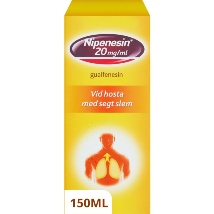Nipenesin är ett receptfritt läkemedel som används för att lindra hosta med segt slem. Nipenesin innehåller guaifenesin som bidrar till att lösa upp slem från luftvägarna och göra det lättare att hosta upp.