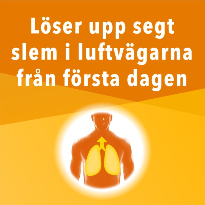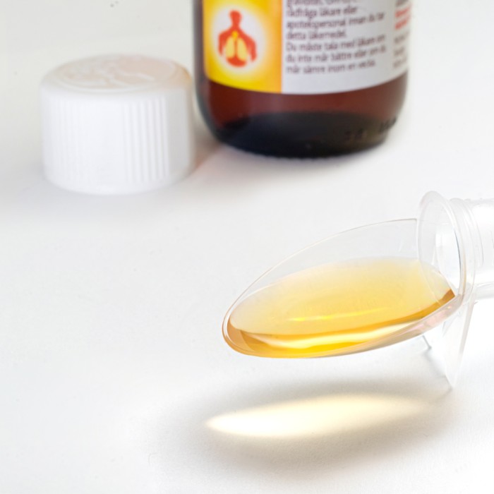 Den aktiva substansen är: guaifenesin. Denna produkt innehåller 100 mg guaifenesin i varje 5 ml. Övriga innehållsämnen är: natriumcitrat, citronsyramonohydrat, karbomer, glycerol, etanol, glukos, sackaros, sukralos, natriumbensoat (E211), sockerkulör (E150), honungssmakämne, citronsmakämne, smakämne med kylande effekt, levomentol, smakämne med stickande effekt, smakämne med värmande effekt, smakförstärkare och smakämne med maskerande effekt samt vatten.