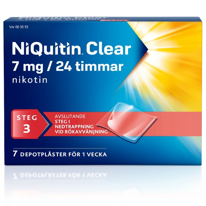 Steg 3: NiQuitin Clear 7 mg/24 timmar; 7 mg nikotin frigörs under 24 timmar