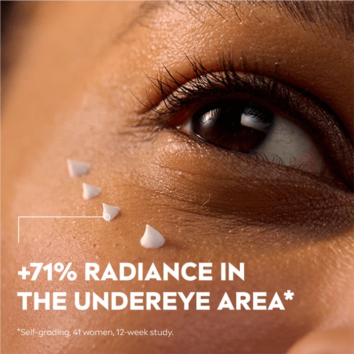 Bevisade resultat: Efter 8 veckor: 40% mindre intensitet av mörkare skugga under ögat, 75% mer lyster för området under ögonen, synligt mindre påsar under ögonen. 12 veckors studie, 41 kvinnor.