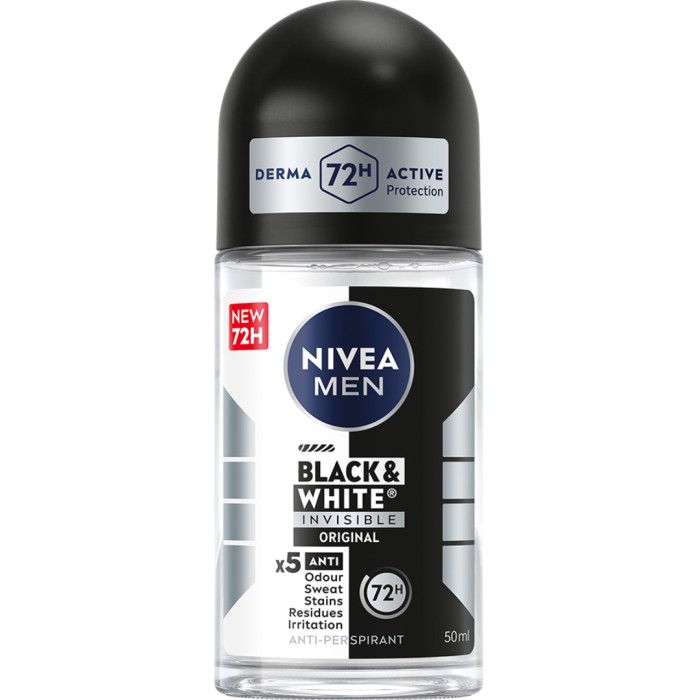 NIVEA MEN Black & White Original Anti-Perspirant är en pålitlig deodorant roll-on som ger upp till 72 timmars effektivt skydd mot svett och lukt. Denna antiperspirant-deo ger ett skydd mot vita märken på svarta kläder, och mot gula fläckar på vita kläder tack vare den unika patenterade anti-stain teknologin. Antiperspirant-deodoranten för män är skonsam mot huden och ger en bekväm och torr känsla.